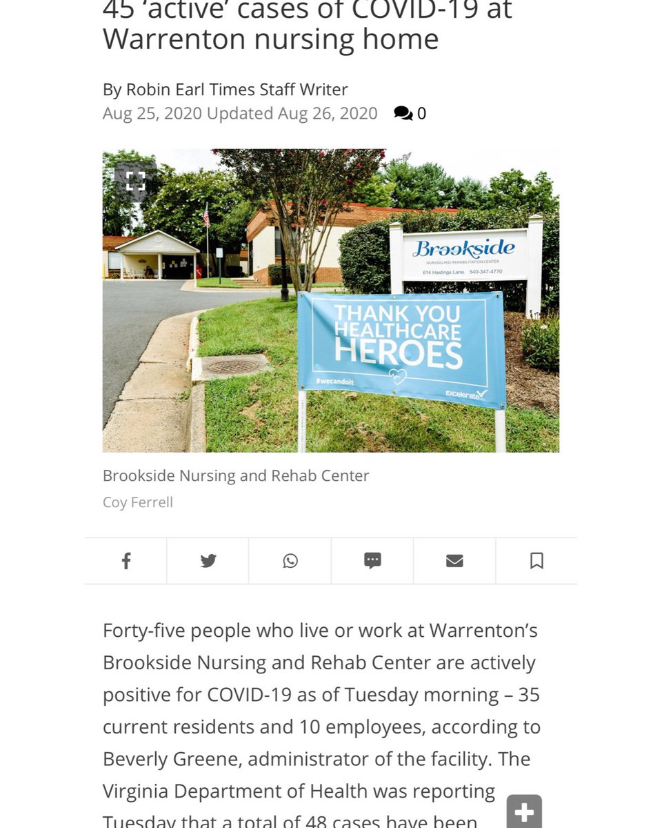 45 Active Cases Of Covid 19 At Warrenton Nursing Home News Fauquier Com